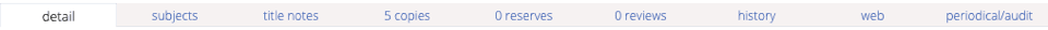 Note that catalogue views use various shades in the red spectrum in the header part as a visual clue to where you are in Athenaeum. The title views have a burgundy red, the Copy views use a burnt orangey red and the archive uses a deep claret (almost purple) red.