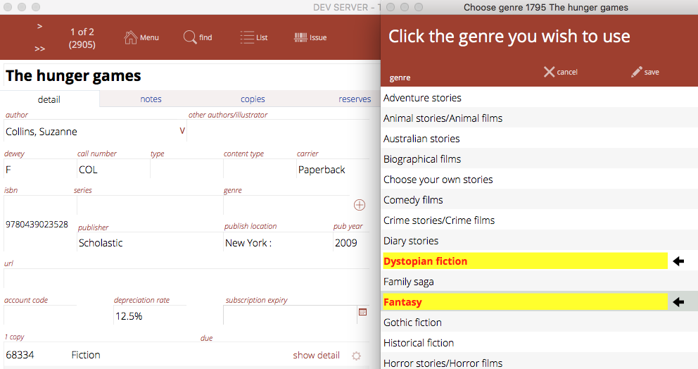 - you can have detailed notes for each copy separate to the title's notes e.g. the title might have a note "suitable for mature reading" and a copy might have "page 37 is missing"
